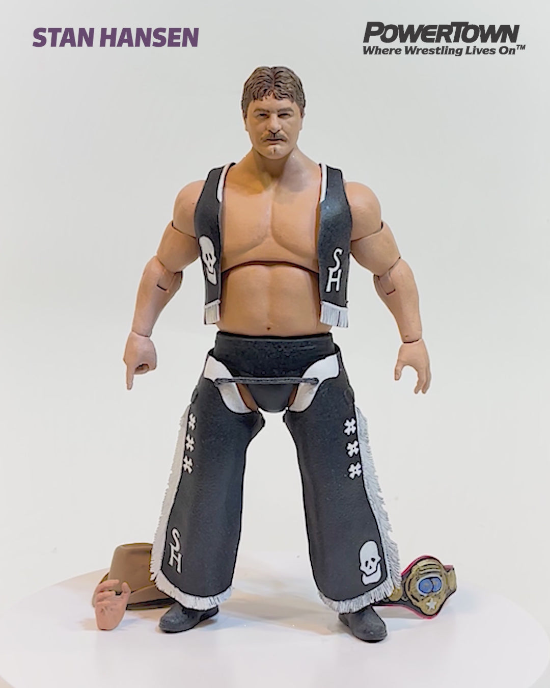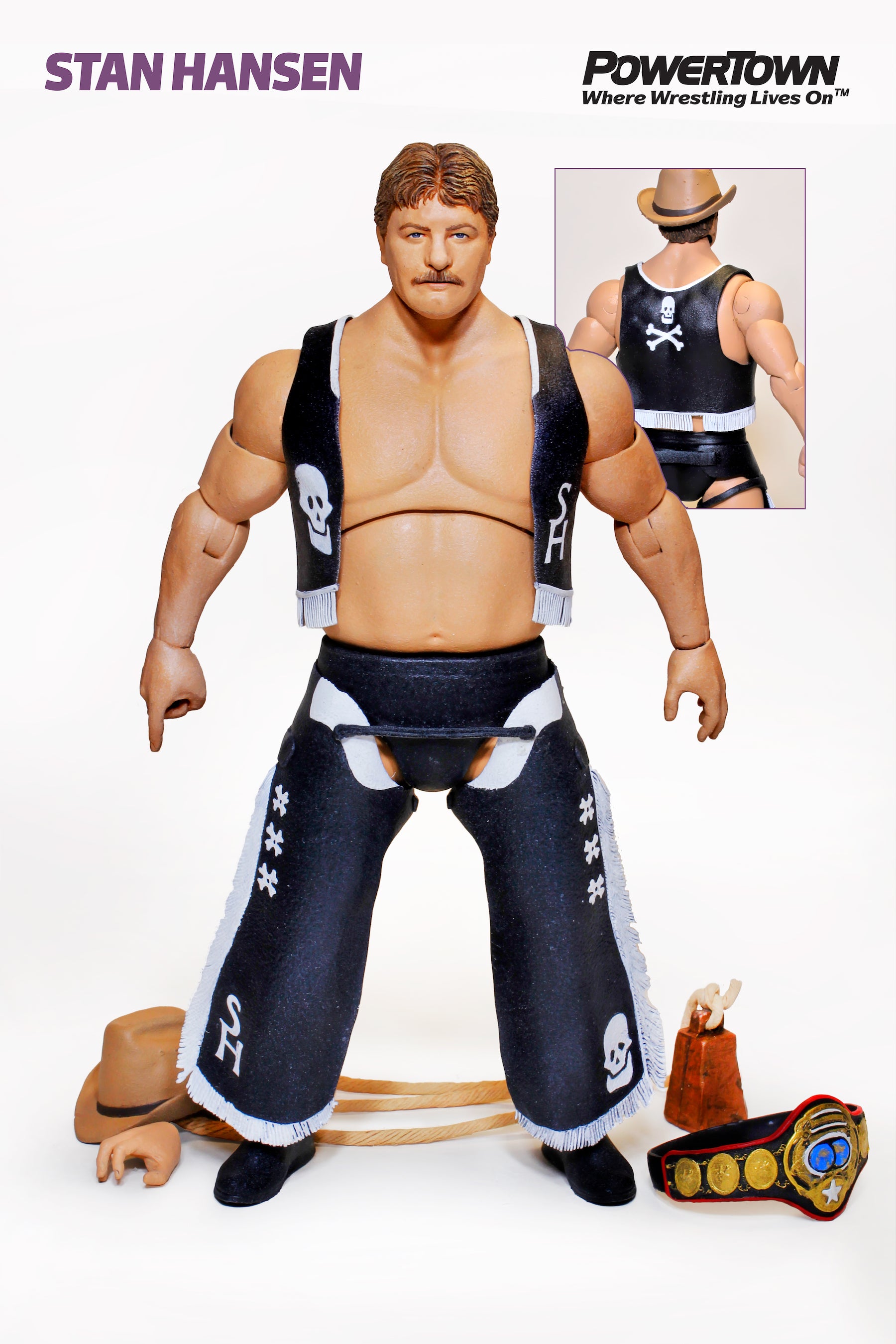 Wielding his signature bull-rope adorned with his Cowboy hat, leather vest, and chaps, Stan Hansen was a force inside the ring.